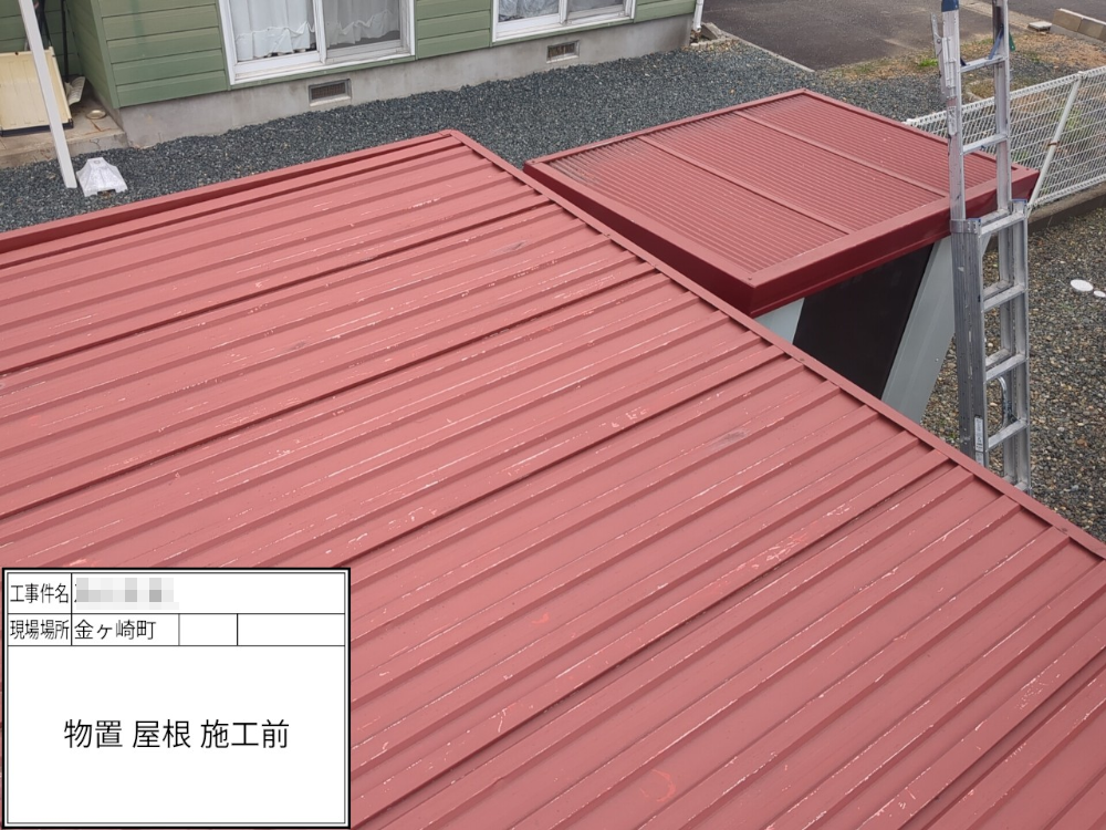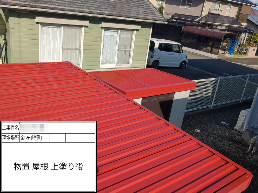 金ケ崎町O様宅の物置の屋根を、鮮やかな赤に塗装させていただきました。